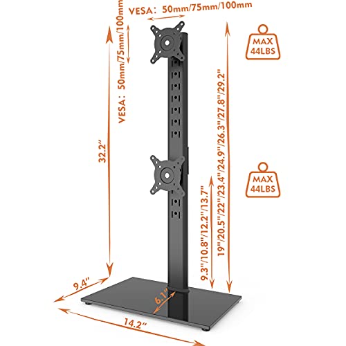 Specification: Dual Monitor Stand – Vertical Stack Screen Free-Standing Monitor Riser Fits Two 13 to 34 Inch Screen with Swivel, Tilt, Height Adjustable, Holds One (1) Screen Up to 44Lbs