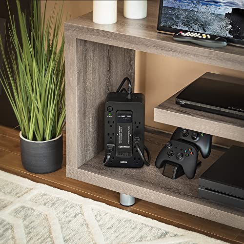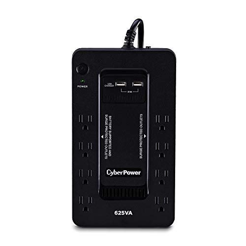 The CyberPower ST625U Uninterruptible power supply (UPS) system provides battery backup and surge protection for lightning-induced surges and other power events that can damage electronic equipment. This unit delivers enough battery backup to power connected electronics through utility power failure and enough runtime to perform a graceful shutdown to protect against the loss of data and damage to valuable electronics during longer outages. The ST625U has two USB charging ports with 2.1 amp shared total output which gives you a faster charging time. This unit is designed to minimize noise for a quieter work environment and to run efficiently to reduce power consumption. Including a sleek design, this UPS is perfect for all your home office and entertainment needs, including computers, gaming consoles, and Broadband routers. With a $100,000 lifetime connected equipment guarantee and a three-year warranty, you can trust CyberPower commitment to the quality of this battery backup with surge protection.