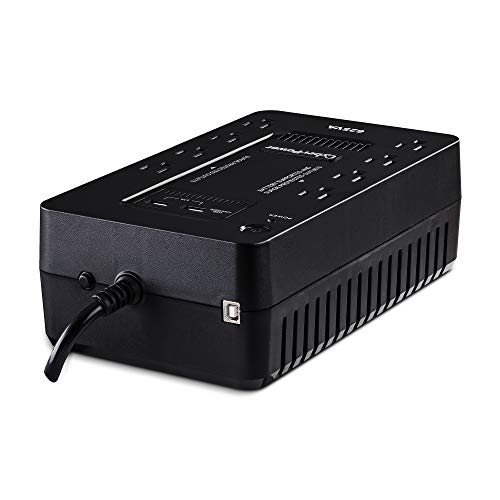 Specification: CyberPower ST625U Standby UPS System, 625VA/360W, 8 Outlets, 2 USB Charging Ports, Compact, Black
