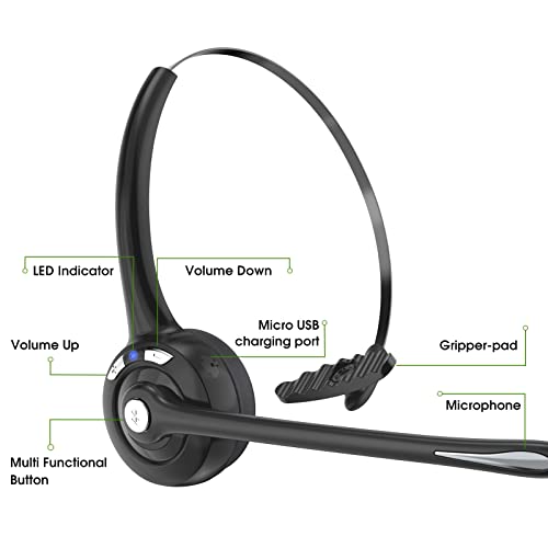 Specification: Bluetooth Headset with Microphone,V5.1,Noise Canceling Wireless On Ear Headphones, Bluetooth Headphones with Mic, Phone Headset Mute Button for Laptop, Skype, Call Centers, Office, Trucker