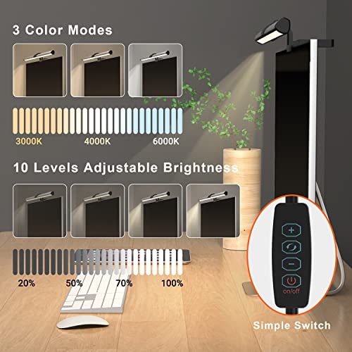 【3 Color Temperatures & Adjustable Brightness】Our screen light provides 3 different color temperatures (3000K / 4000K / 6000K) , easy to switch to warm lighting, cool lighting or natural lighting. Simple button controls of 10 different brightness levels, enable you to personalize the light source according to your different needs.