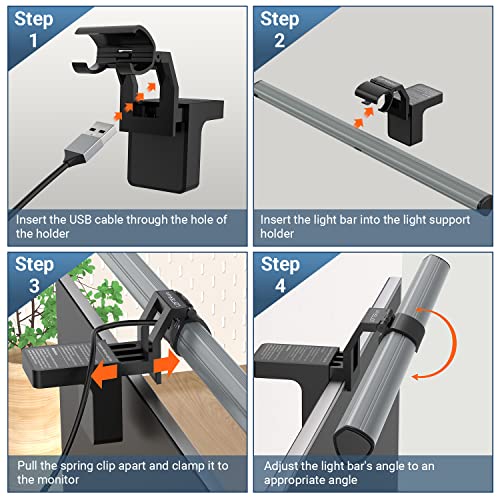 【USB Powered & Memory Feature】Simply insert the USB plug to computer, power bank, power adapter, or any other USB devices to power the monitor lamp. Memory feature helps remember your last used brightness and color temperature, no need to reset them again next time.