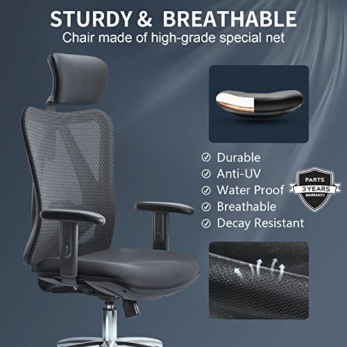 SIHOO M18 Ergonomic Office Chair for Big and Tall People Adjustable Headrest with 2D Armrest Lumbar Support and PU Wheels Swivel Tilt Function Black