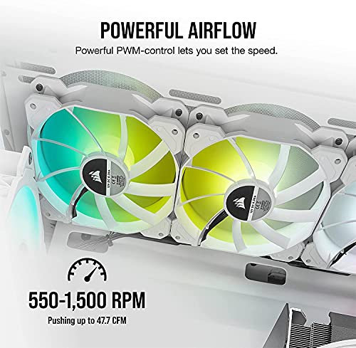 Specification: CORSAIR iCUE SP120 RGB ELITE Performance 120mm PWM Triple Fan Kit with iCUE Lighting Node CORE – White