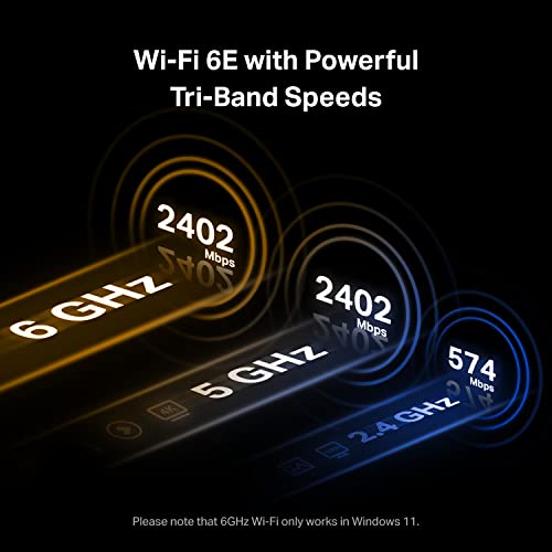 Specification: TP-Link WiFi 6E AXE5400 PCIe WiFi Card for Desktop PC (Archer TXE72E), Bluetooth 5.3, WPA3, 802.11axe Tri Band Wireless Adapter with MU-MIMO, OFDMA, Ultra-Low Latency, Supports Windows 10, 11 (64bit)