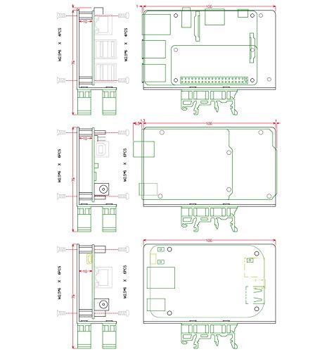 5, Package included: 1x Aluminum bracket, 1 pair DIN rail adapter feed and mount screws, 6x M2.5x10mm standoffs, 6x M2.5x6mm flat head screws, 6x M2.5×6 pan head screws.