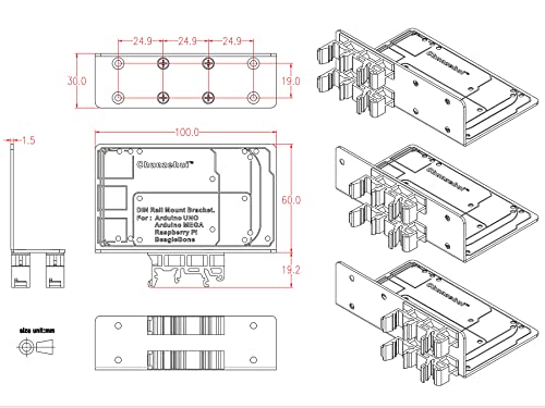 Specification: DIN Rail Mount Bracket for Raspberry Pi 1A+ 1B+ 2B 3B 3B+ 4B Zero, UNO Mega-2560 BeagleBone Black