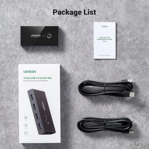 Specification: UGREEN USB 3.0 Switch Selector 2 Computers Share 4 USB 3.0 Ports KVM Switcher USB for PC Laptop Keyboard Mouse Printer Scanner One Button Switch Adapter with 2 Pack USB 3.0 Cables