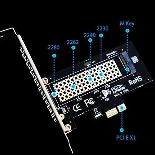 Specification: GLOTRENDS M.2 PCIe X1 Adapter with M.2 Screw for M.2 PCIe 4.0/3.0 SSD (NVMe/AHCI Key M), PCIe X1/X4/X8/X16 Lane Installation, but Only PCIe X1 Bandwidth (PA09-X1)