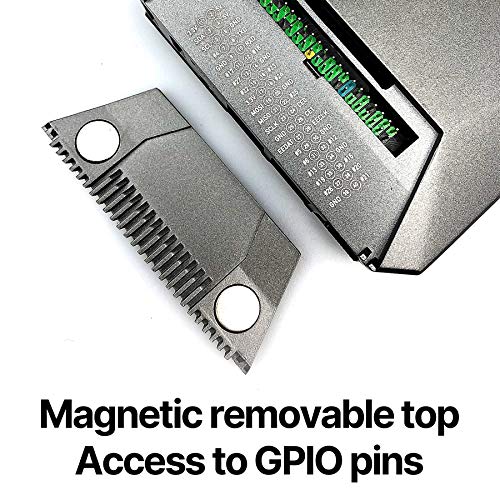 Keeps RPI 4 cooler with aluminium case enclosure and heatsink. GPIO access via removable magnetic cover.