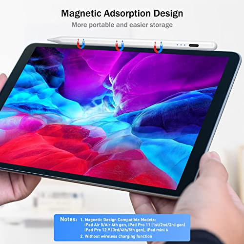 【Magnetic Adsorption】The magnetic design keeps this stylus from rolling and losing while resting, making it easier to use and organize. It is more convenient to store and carry in situations such as business trips, meetings and travel. Magnetically compatible devices: iPad Air 4/Air 5th generation, iPad Pro 11 (1st/2nd/3rd generation), iPad Pro 12.9 (3rd/4th/5th generation), iPad mini (6th generation). ▲Wireless charging is not supported.