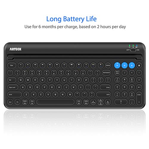 Specification: Arteck Universal Bluetooth Keyboard Multi-Device Built-in Cellphone Cradle Wireless Keyboard for Windows, iOS, Android, Computer Desktop Laptop Surface Tablet Smartphone Built-in Rechargeable Battery