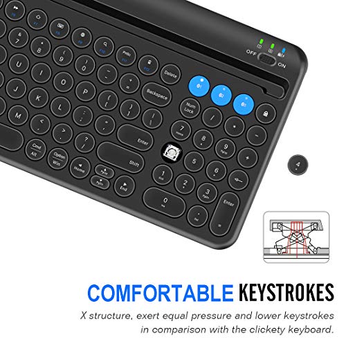 3 Devices Switch with A Single Clicking: This keyboard is able to connect to 3 devices at the same time. You can switch between 3 devices with a single key clicking.