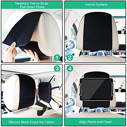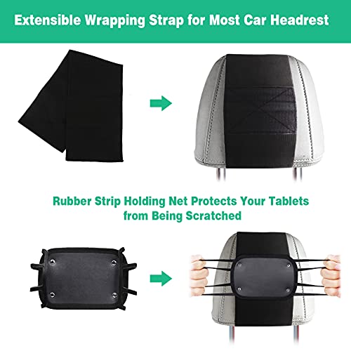 WONNIE Upgrade Tablet Holder for Car, Car Headrest Mount Holder for Backseat, Headrest Mount for Kids Tablets with Anti-Slip Strap & Silicone Holding Net/Fits All 7-12.9” Tablets