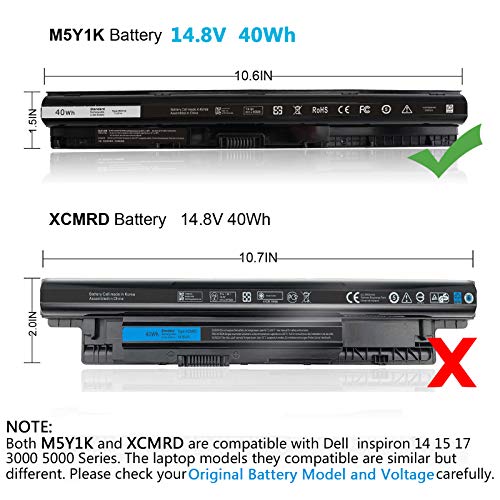 Specification: M5Y1K Laptop Battery Compatible with Dell Inspiron 40Wh 14.8V,14 15 17 3000 5000 Series,5558 5559 3551 453-BBBR 3452 3451 3458N 3567 5755 5758 5759,Vostro 3458 3558,6YFVW VN3N0 GXVJ3 W6D4J HD4J0 4WY7C