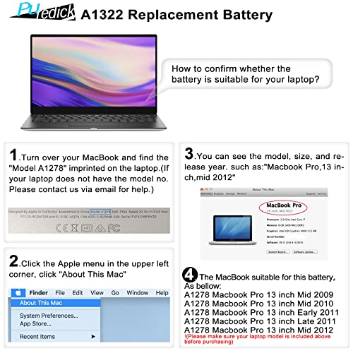 Specification: Puredick A1322 A1278 Battery Replacement Battery A1278 for MacBook Pro 13 inch [2009 2010 2011 2012 Version] – High-Performance and Longevity [10.95V 65.7Wh]