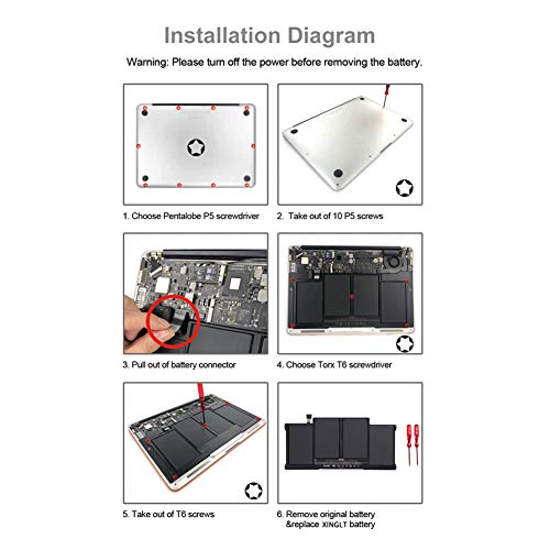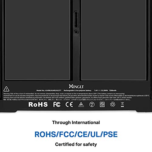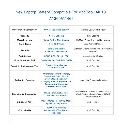 Specification: XINGLT Replacement Laptop Battery for Apple MacBook Air 13 inch A1466(Mid 2012, Mid 2013, Early 2014, Early 2015,2017) A1369(Late 2010, Mid 2011 Version) 7200mAh,fits A1496 A1405 A1377 [Upgraded 3.0]