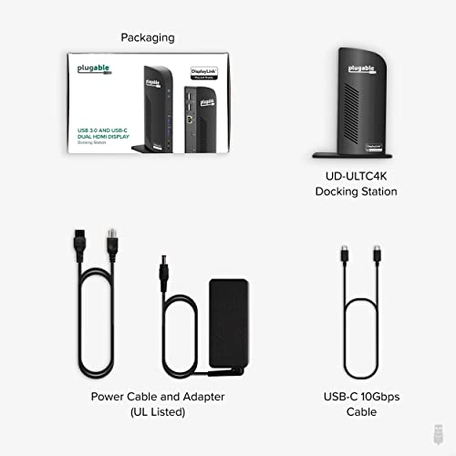Specification: Plugable 4K USB C Docking Station Triple Monitor with 100W Power Delivery, USB C Dock for Thunderbolt and USB-C Windows and Mac M1 M2 M3 (3X HDMI and 3X DisplayPort, 1x USB-C, 4X USB 3.0, SD Card)
