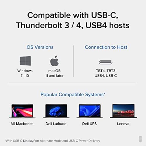 Compatibility – USB-C dock is compatible with Windows 10 or later, ChromeOS 100 or later, and macOS 11+ systems with Thunderbolt 4, Thunderbolt 3, USB4, and USB-C