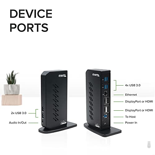 Specification: Plugable USB 3.0 and USB-C Dual 4K Display Docking Station with DisplayPort and HDMI for Windows and Mac (Dual 4K DisplayPort & HDMI, Gigabit Ethernet, Audio, 6 USB Ports)