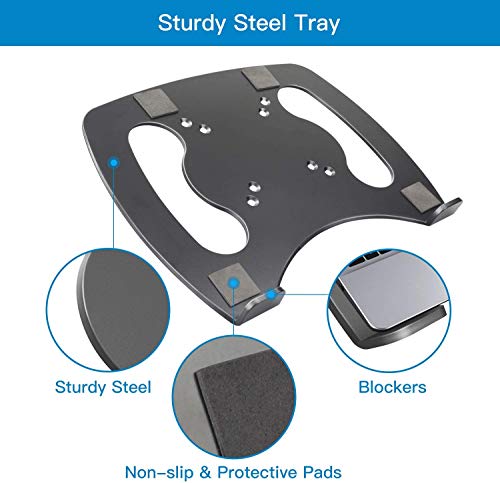 Laptop Tray Steel Notebook Holder for Monitor VESA Mount Stand Fits VESA 100×100 mm Mounting Holes with M4 Screws, 22lbs Capacity with Vented Cooling Platform
