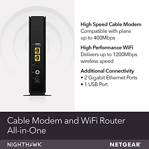 Specification: NETGEAR Cable Modem with Built-in WiFi Router (C6230) – Compatible with All Major Cable Providers incl. Xfinity, Spectrum, Cox – for Cable Plans Up to 400Mbps – AC1200 WiFi Speed – DOCSIS 3.0