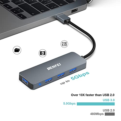 Specification: BENFEI USB 3.0 Hub 4-Port, Ultra-Slim Hub Compatible for MacBook, Mac Pro, Mac Mini, iMac, Surface Pro, XPS, PC, Flash Drive, Mobile HDD
