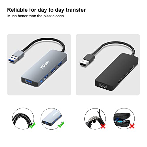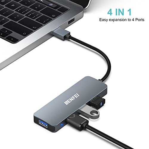 Easy Expansion: BENFEI 4-Port USB 3.0 Hub adapter expands your laptop with 4 addtional USB 3.0 Port.Compatible with laptop, pc, XBOX, PS4, PS5, flash drive, keyboard, mouse, card reader, HDD, cellphone OTG adapter, printer, webcam, USB fan and USB cables