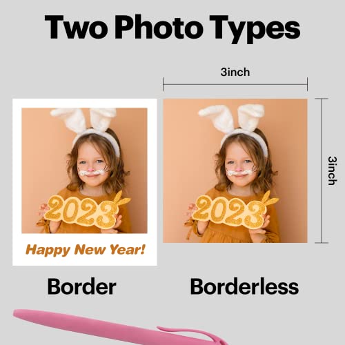 TWO PHOTO TYPES – The KODAK Mini 3 Retro photo printer supports both border and borderless type photos. Write down your memories in the border type so they last forever. Print the borderless type to have larger sized photos.