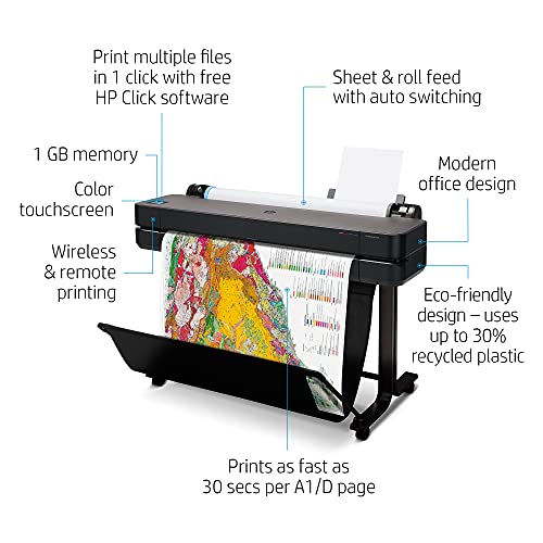 DESIGNED AROUND YOU: Avoid waiting by the printer with high-speed printing as fast as 30 seconds per A1/D plot. Be more productive—save time from job prep to final print by printing your projects up to 2x faster. Print your jobs and manage your plotter from virtually anywhere, anytime with the HP Smart app. Get high-quality results—HP Bright Office Inks plot up to 31% more line accuracy and up to 65% more gamut. Print with confidence, you’ll get the results you expect with an intuitive driver and true print preview.